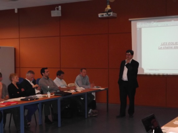 Dans le cadre du programme Eolissima ( www.eolissima.fr), plus de 30 participants – entreprises et universités, de toute la France – ont suivi les exposés de Régis BLANC (Maïa Eolis) , Patrick BRUTSAERT (Jeumont electric), Xavier GUILLAUD (Professeur à l’ECL ) et Olivier GRAMMONT (Fairwind).