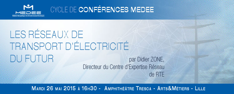 Dans le cadre du cycle de conférences mis en place par le pole MEDEE, nous vous invitons le 26 Mai, à la conférence sur le thème des réseaux de transport d’électricité du futur.