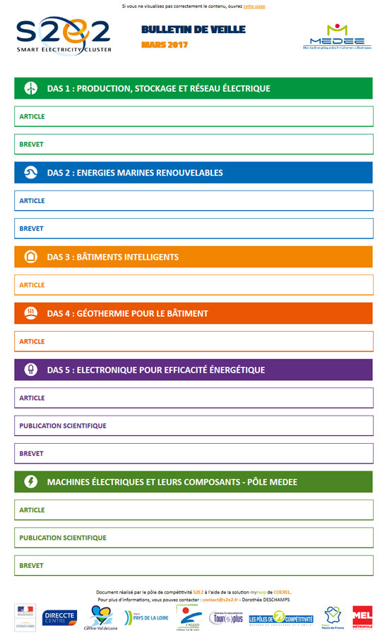 Vous trouverez ici la 3ème lettre de veille MEDEE/S2E2 de Juillet 2017 !La rubrique dont s’occupe particulièrement MEDEE « Machines électriques et leurs composants » est à la fin.