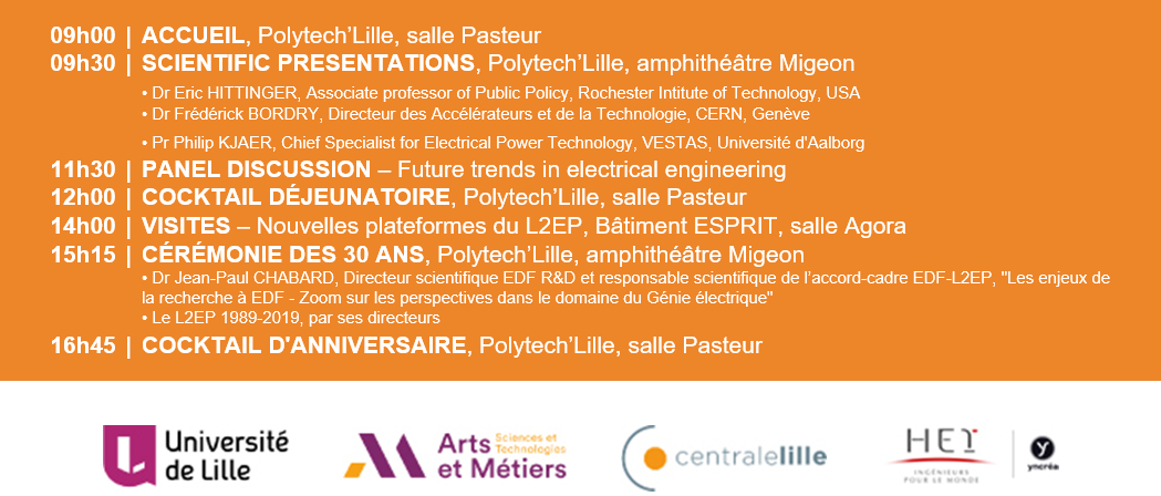 En cette fin d’année 2019, le L2EP célèbre donc ses 30 années d’existence, avec les personnes qui l’ont construit, les partenaires institutionnels, académiques et industriels qui lui font confiance, et ses tutelles qui le soutiennent.