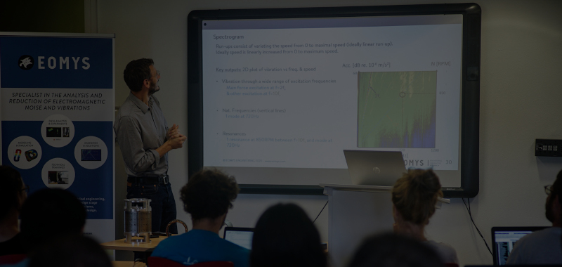 - aux ingénieurs en mécanique / acoustique qui veulent mieux comprendre la physique du bruit et des vibrations dues aux excitations électromagnétiques et apprendre à analyser les données de test pour solutionner des problématiques NVH (NVH = noise, vibration, harshness)