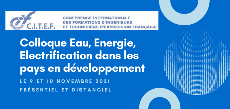 La Conférence Internationale des formations d’ingénieurs et Techniciens d’Expression Française (CITEF) organise le 9 et 10 novembre 2021, un colloque « Eau, Energie, Electrification dans les pays en développement ». Cet évènement se déroulera dans les locaux de l’ADIUT, à Clichy (92) et sera accessible en distanciel.