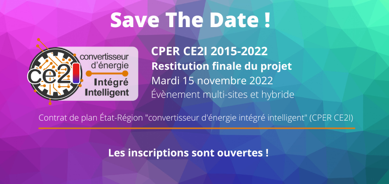 Les partenaires du Contrat de plan État-Région « convertisseur d’énergie intégré intelligent » (CPER CE2I) vous invitent à la restitution de leur projet scientifique le mardi 15 novembre 2022. Venez vous informer sur l’apport des nouveaux convertisseurs à la transition énergétique !