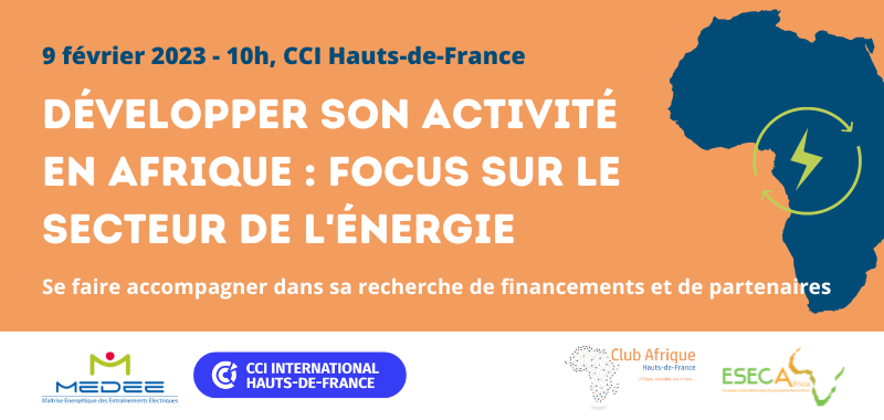 Cette matinée permettra de mettre en lumière les dispositifs d’accompagnement et de financement à votre disposition pour soutenir votre déploiement sur les marchés africains de l’énergie. Cet évènement sera l’occasion de (re)découvrir les services du Club Afrique de CCI International Hauts-de-France ainsi que ceux du pôle MEDEE, avec un focus sur le projet européen ESECA. Des témoignagnes d’entreprises déjà actives sur le continent viendront compléter les interventions.