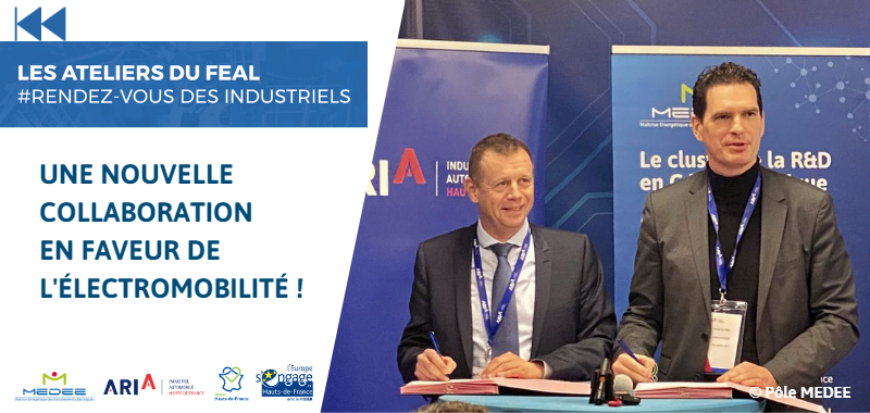 Le 8 février 2023, le Pôle MEDEE et l’Association Régionale de l’Industrie Automobile (ARIA Hauts-de-France) ont coorganisé un atelier dédié à L’impact de l’électromobilité sur les filières automobile et Génie électrique. Cet événement s’est déroulé dans un lieu symbolique pour les deux structures : chez MOV’NTEC, un adhérent commun. Il a rassemblé plus de 80 participants. A cette occasion, les deux co-organisateurs ont signé une convention de partenariat, afin de mutualiser les efforts en faveur de l’avenir des filières automobiles et génie électrique.