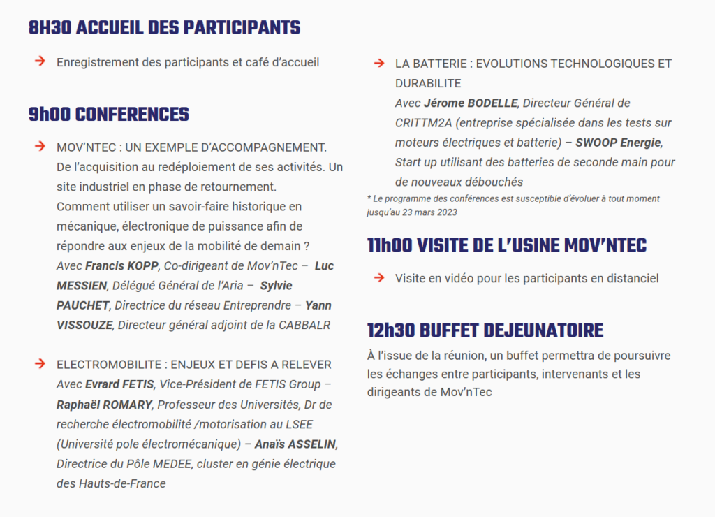 Rendez-vous le jeudi 23 mars 2023 à 8h30, chez MOV’NTEC