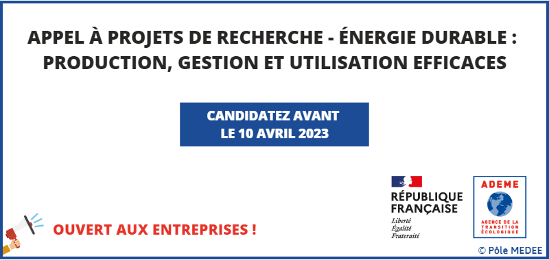 L’ADEME lance la 6ᵉ édition de l’appel à projets Énergie Durable. Cet appel se centre sur la planification territoriale, la gouvernance de l’évolution et l’optimisation des systèmes énergétiques et de leurs infrastructures et la réduction des impacts environnementaux associés. Il s’adresse en particulier aux acteurs publics et privés de la recherche.