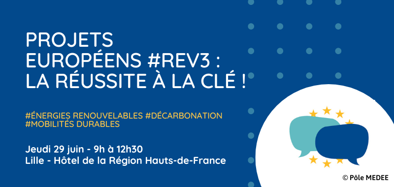 MEDEE s’associe à la Région Hauts-de-France, à Hauts-de-France Innovation Développement (HDFID) et à trois autres pôles régionaux (CD2E, Polénergie et TEAM2) pour vous proposer un événement portant sur les projets européens en lien avec la dynamique REV3 !