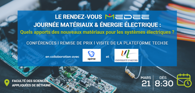 En 2024, le Pôle MEDEE vous donne rendez-vous pour un événement autour du premier axe de travail de son Comité Scientifique : « Matériaux et composants du génie électrique ». Ce rendez-vous est supervisé par les responsables de cet axe au pôle : Stéphane Duchesne (Professeur des universités et Directeur adjoint du LSEE – Université d’Artois) et Guy Ligi (Responsable du contrôle qualité – Thyssenkrupp Electrical Steel).