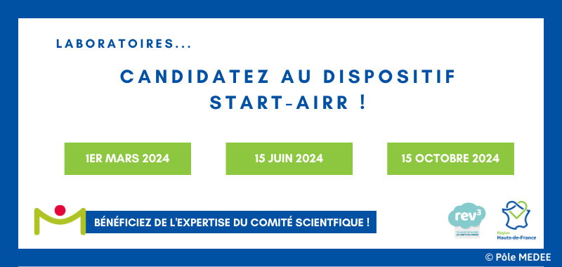 Start-AiRR requiert notamment que votre projet ait reçu la labélisation d’un Pôle de Compétitivité ou d’excellence, à l’image du Pôle MEDEE. N’hésitez donc pas à soumettre votre projet au Comité Scientifique du Pôle ! Tout au long de l’année le Comité Scientifique examine vos projets afin de leur donner un label, un soutien ou encore un avis argumenté.