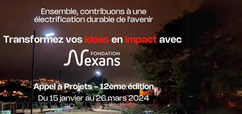 Si votre initiative a pour objectif d’améliorer l’accès à l’électricité, déposez votre dossier avant le 26 mars 2024 à l’adresse suivante : projets.fondationnexans.com