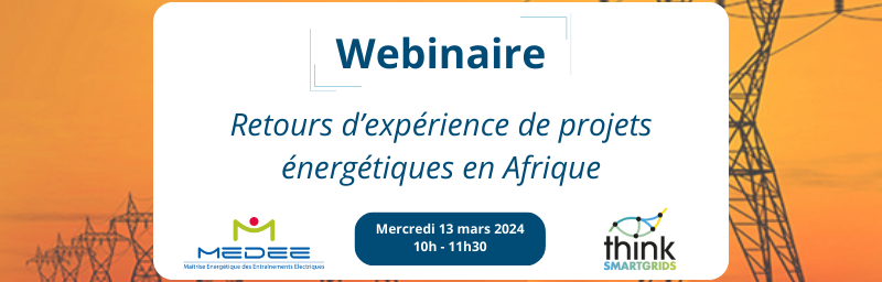 Think Smartgrids et le Pôle MEDEE organisent un webinaire centré sur différents retours d’expérience de projets en Afrique. Pendant 1h30, des experts partageront leurs initiatives énergétiques en Afrique, notamment dans le domaine des réseaux électriques. Ce webinaire aura lieu le mercredi 13 mars de 10h à 11h30 Je m’inscris Programme ▶️ Introduction par Régis Le … Lire la suite de [Webinaire] Retour d’expérience de projets énergétiques en Afrique