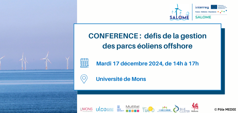 Venez participer à l’événement de lancement du projet Interreg SALOME le 17 décembre 2024. Assistez à une conférence incontournable sur les défis actuels et futurs de la gestion dynamique des parcs éoliens offshore. Cet événement se tiendra de 14h00 à 17h00 à l’Université de Mons.