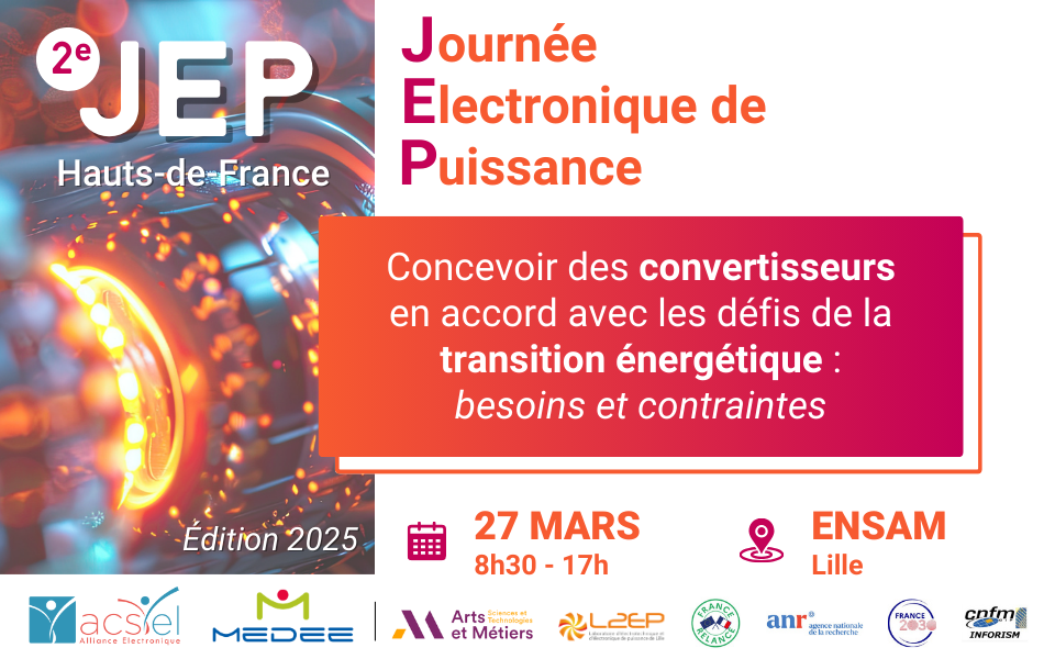 MEDEE et ACSIEL Alliance électronique vous invitent à la seconde édition de la Journée Électronique de Puissance Hauts-de-France le jeudi 27 mars 2025. Cette année le thème retenu est « Concevoir des convertisseurs en accord avec les défis de la transition énergétique : besoins et contraintes ».