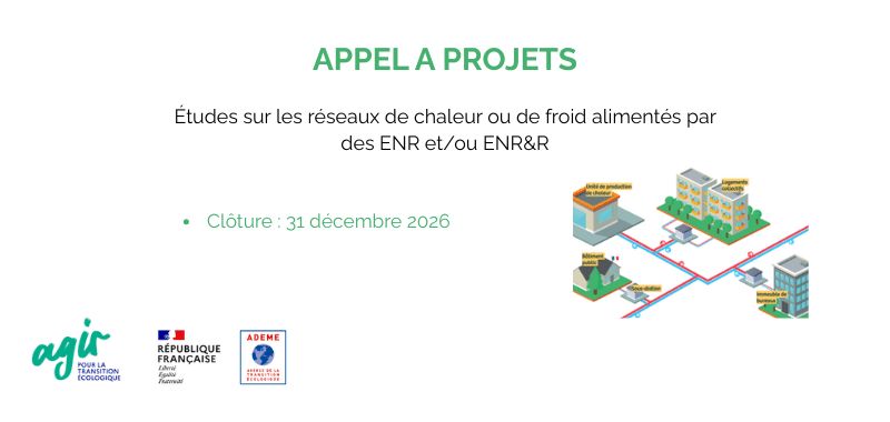 Le dispositif « Études sur les réseaux de chaleur ou de froid alimentés par des énergies renouvelables et de récupération (EnR&R) », porté par l’ADEME, vise à accompagner les porteurs de projets dans la conception, l’analyse et l’optimisation de réseaux de chaleur et de froid performants. Il soutient la réalisation d’études en amont des investissements afin de sécuriser les choix techniques, énergétiques et économiques, dans une logique de transition énergétique territoriale.